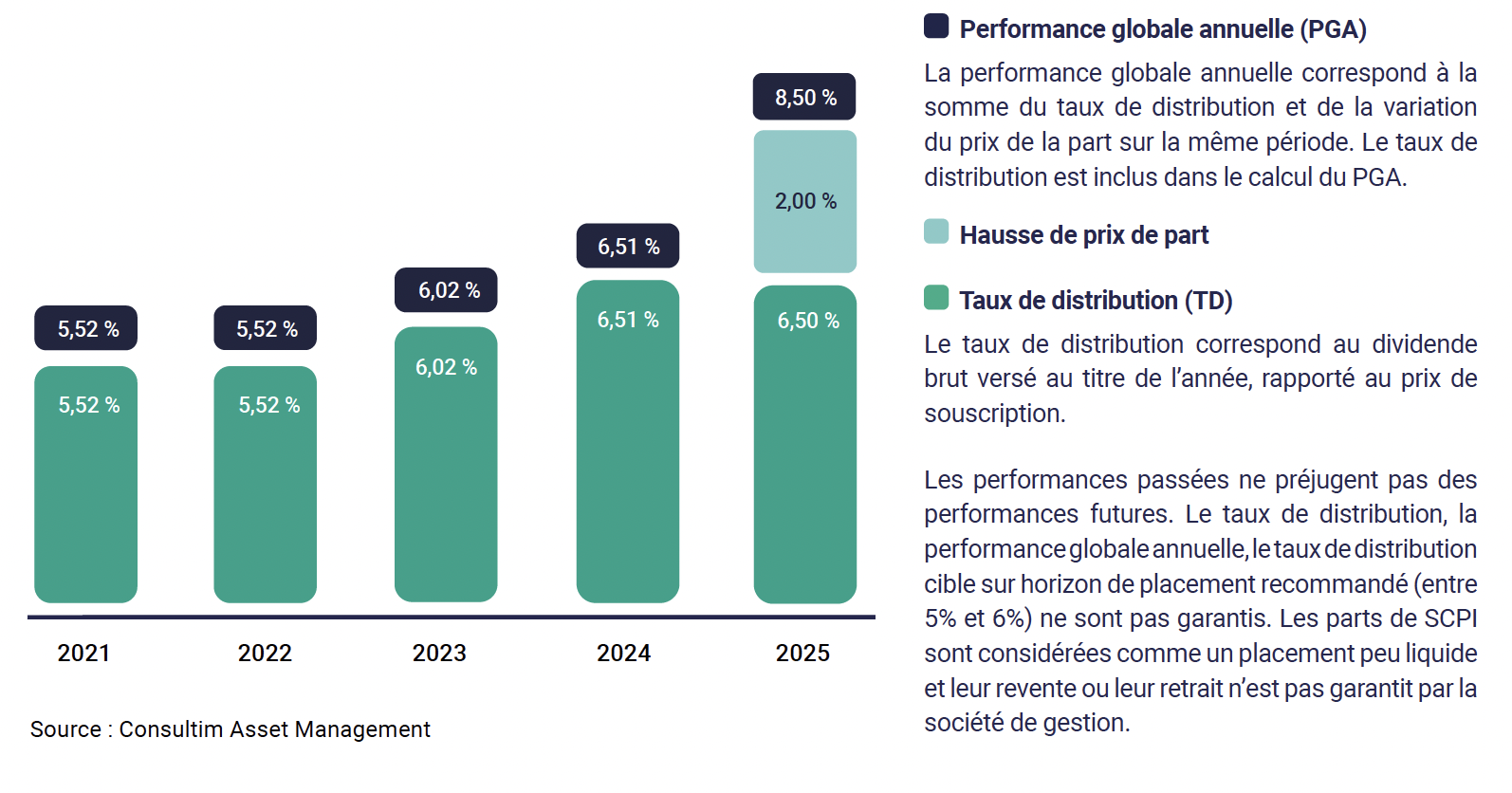 Tout investissement en parts de SCPI comporte notamment des risques de perte en capital et de liquidité. La rentabilité n’est pas garantie. Les informations fournies sur les performances passées ne sont pas un indicateur fiable des performances futures.